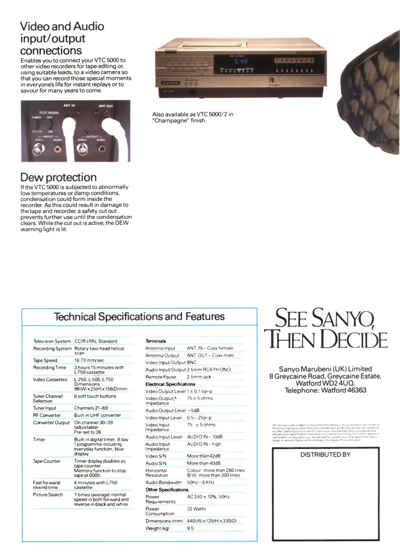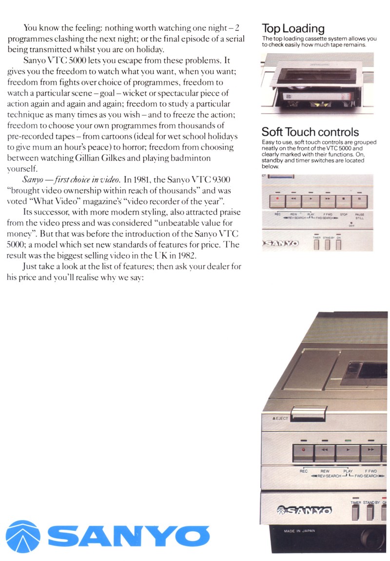 The Sanyo VTC 5000 is the first non Sony machine to be featured on this site.