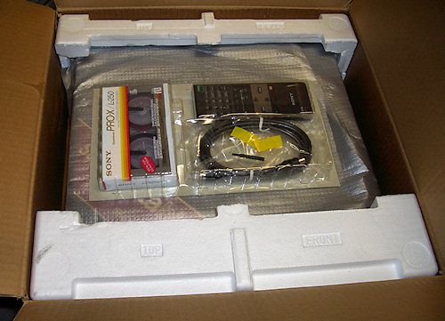 The picture to the left shows the RMT-223 remote control. This was supplied with early production models. Later machines came with a jog-shuttle controller RMT-232.