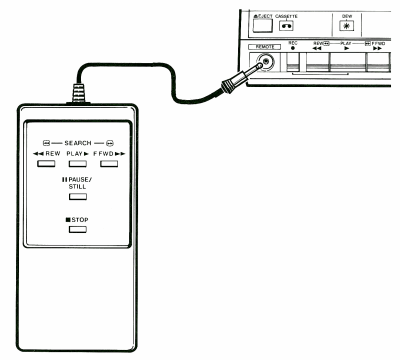 - A wired remote control (no model number given). It was a basic unit replicating five of the buttons from the the front of the machine, play, pause/still, stop, rew and ff.