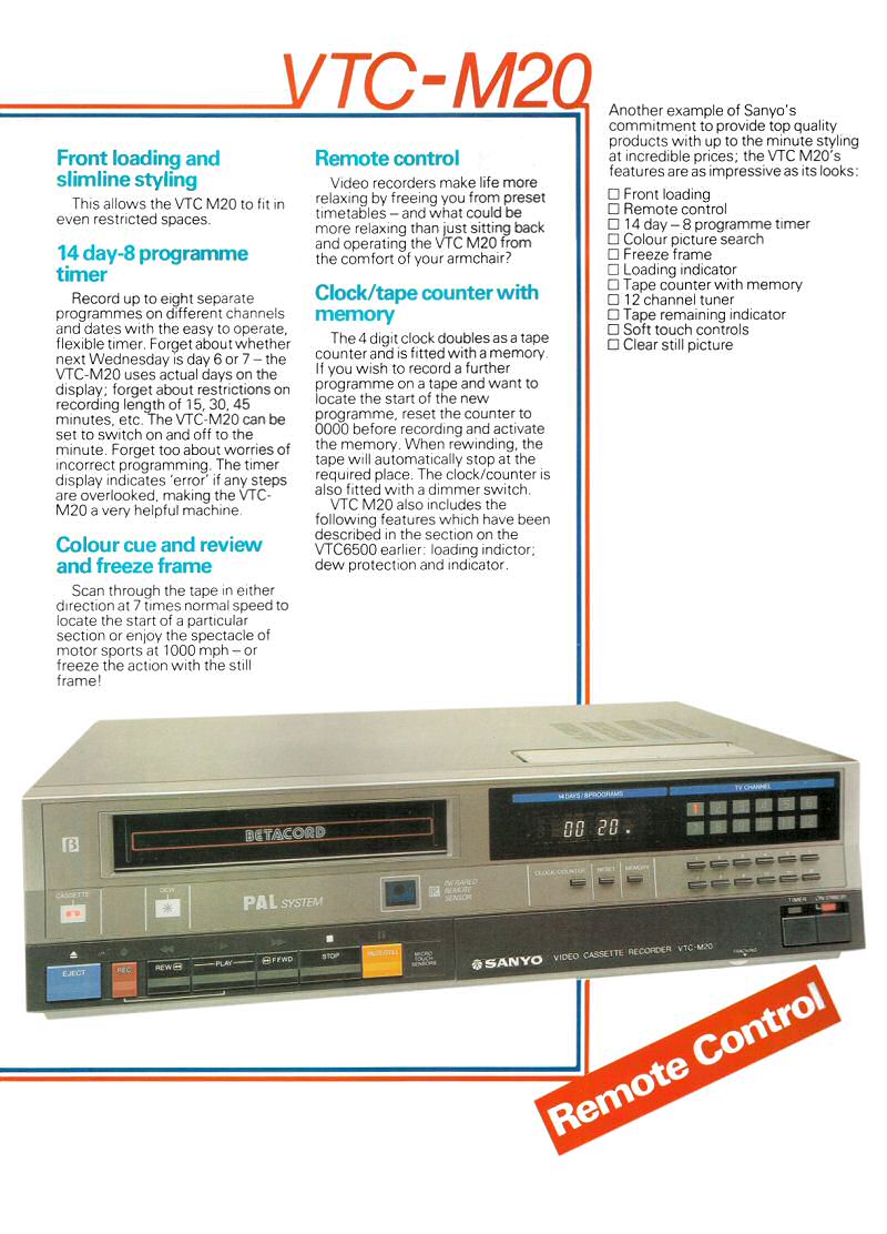 The VTC-M20 is a very nice looking, remote control, front loader from Sanyo (the Australian 'AS' model is shown here). It did not have