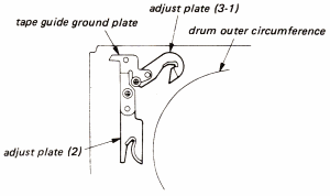 Note: Remove while turning the upper drum assembly, taking care not to move the adjust plate. If the adjust plate is moved, the tape path is influenced.