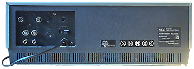 The unit comes with a 4-program timer that was fairly special for its time. More uncommonly though for a PAL machine, the clock was in 12 hour am / pm layout. Unusually, when setting a program, the unit asks for the record length rather than an end time. Fortunately, both are shown in the display at the same time. The time display also shares a trait with some Sony models, that is the first half of a minute is shown by a blinking top dot between the hours and minutes and the second half by the bottom dot flashing. The VCR supports colour picture search and still, but picture search is not capstan driven and still just stops the capstan motor. Pressing picture search again switches to a wind mode, there is no mechanical difference between the two. Other features include a repeat memory function set by a switch at the back and a mirror to view the tape remaining of a loaded tape. A wired remote was available for this VCR but it is not clear if it was included in the standard package. If whilst winding a tape, rewind is pressed (or the other way) the machine does not first brake but instead instantly changes the wheel motor direction to full power, which is not good for the tape. The same is true whilst in picture search. The rear of the unit has the standard UHF in/out and Audio/Video in/out. There is also a voltage selector and power switch.