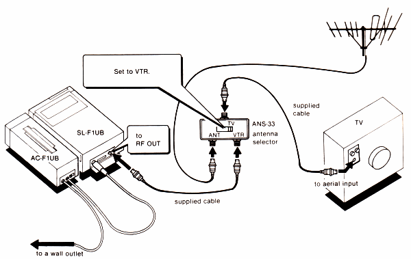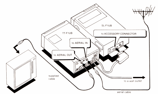TV connectionsThe following diagrams and explanations can be found in the SL-F1 user manual.First unplug your TV from the mains outlet and remove the aerial cable from its socket in the back of the TV.